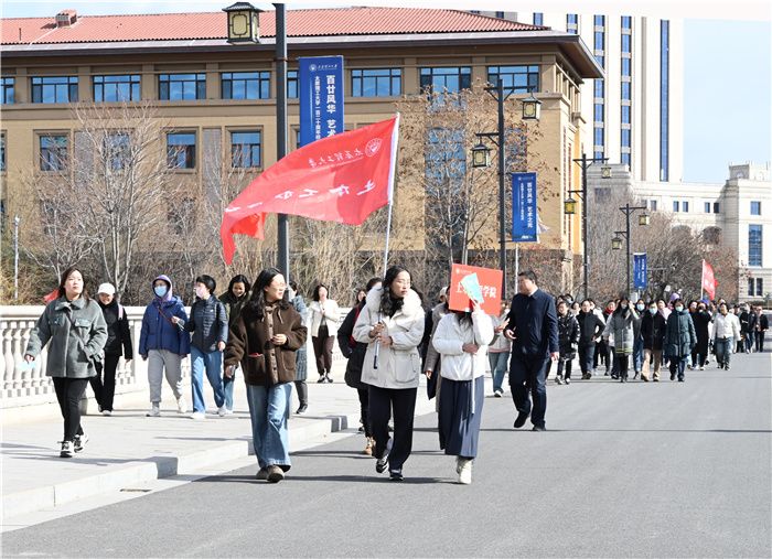 阳和启蛰,品物皆春。3月7日下午,全校34个基层工会的1500余名女教职工齐聚明向校区,参加由校工会主办的女教职工环校健步行活动,共同庆祝第114个国际劳动妇女节。校党委副书记刘润祥出席活动并致辞。活动由校工会有关负责人主持。相关单位负责人、各基层单位工会负责人参加活动。