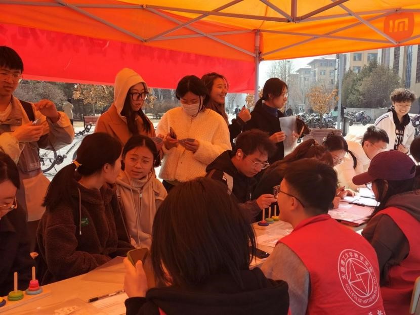 为了庆祝第五个国际数学日,激发同学们对数学的兴趣,进一步加强对数学的认识与了解,同时促进校园文化建设,数学学院于3月14日在西区小广场举办了“乐在数海,智探无穷”数学文化节活动。