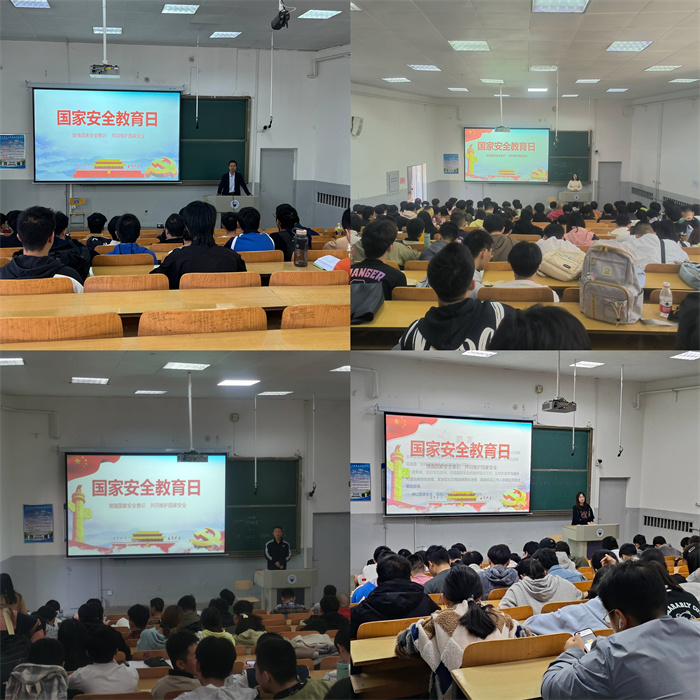 学院通过横幅、展板、发放宣传手册、召开主题班会、组织学生国家安全知识答题、观看“千万高校学生同上一堂国家安全教育课”为主题的公开课等多种方式开展国家安全普法宣传。活动现场宣传氛围浓厚,大家用通俗易懂的语言向同学们讲解《国家安全法》《反恐怖主义法》《反间谍法》《网络安全法》《反有组织犯罪法》《保密法》等与国家安全相关的法律法规以及何为国家安全、危害国家安全的行为及相关罪名、如何维护国家安全等相关知识,引导广大同学认识维护国家安全的重要性,树立自觉维护国家安全的意识。同时还结合电信诈骗、反邪教等方面内容展开法治宣传,切实提升青年学生的法治意识,增强了防范和抵御安全风险的能力,推进安全理念深入人心、落地生根。