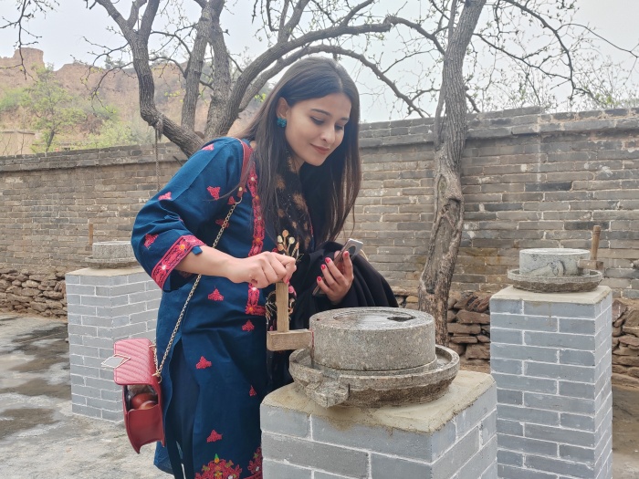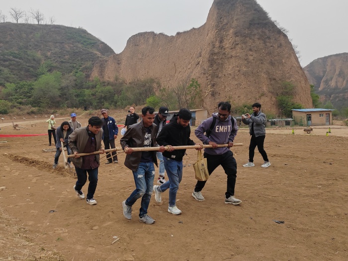 在参观寻访环节,中外师生走进星罗棋布的村落古建,近距离观摩并详细了解了古村落完整的排水系统、等级分明的窑居建筑格局、自给自足的生产作坊、防患未然的仓储制度,深切体悟 “依崖就势、随形生变、层窑叠院、参差别致”的农耕文明。在互动体验环节,国际学生纷纷尝试使用传统农具,还争先恐后参与到磨豆腐、滚铁环、划旱船活动中,感受中国传统民俗节庆朴实热烈的气氛和非遗文化的魅力。行程最后一站,师生来到后沟整村搬迁后的新居,漫步于整齐的白墙黛瓦院落之间,感受乡村生活的新气象。