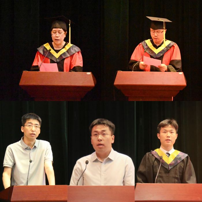 副院长熊晓燕宣读《关于授予2024届博士、硕士、学士学位的决定》。副院长赵敬伟宣读《关于表彰2024届优秀毕业生的决定》。学院为优秀毕业生颁发荣誉证书并赠送“星光台”,希望获得表彰的同学们继续发挥榜样引领作用。