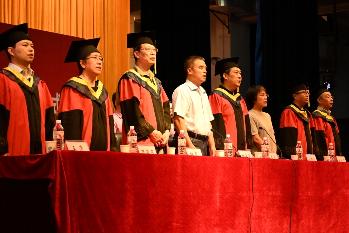 典礼在嘹亮的国歌声中拉开序幕,全院师生庄严肃立,高唱国歌。