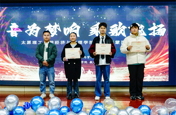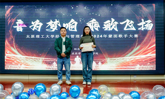 经过评委的专业评审和观众的线上投票,六位获奖选手最终揭晓。1号、2号和16号选手分别以《因为你》《这就是爱》和《孤独患者》获得三等奖;6号选手的《Diamonds》和13号选手的《音乐爱》荣获二等奖;18号选手用一首《春天的芭蕾》摘得桂冠。经济与管理学院团学指导老师吴明泉为获奖者颁奖。自此,第四届蒙面歌手大赛画上圆满句号。