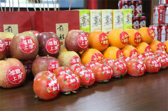紧接着,华迪基地为在场的考研学子逐一递上了满载心意的“上岸能量包”。这些精心筹备的礼包中,包含了寓意心想事“橙”的鲜橙、“苹”稳上岸的苹果、得偿“薯”愿的薯片、“柿柿”如意的柿子,以及祈愿研途旺旺的旺仔牛奶,更有特别定制的、印有每位考研学子姓名的祝福可乐。每一份礼物都承载着基地对考研学子们的美好祝愿与殷切期望,寄托了无尽的期许与鼓励。