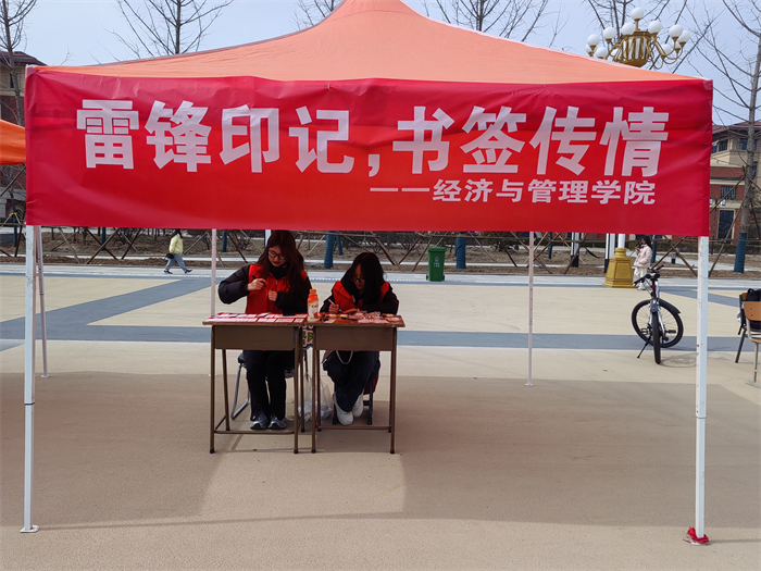 为弘扬雷锋精神,践行社会主义核心价值观,3月5日学雷锋纪念日当天,经济与管理学院于明向校区西区小广场举办了“雷锋印记,书签传情——雷锋书签DIY活动”。全校学生踊跃参与,通过创意手绘书签,感悟雷锋精神,传递温暖力量。