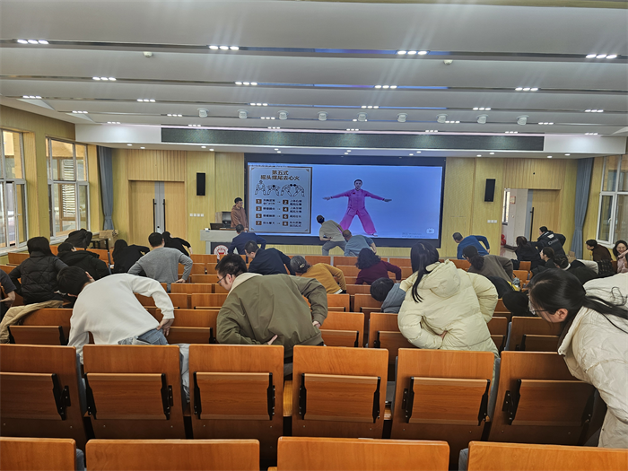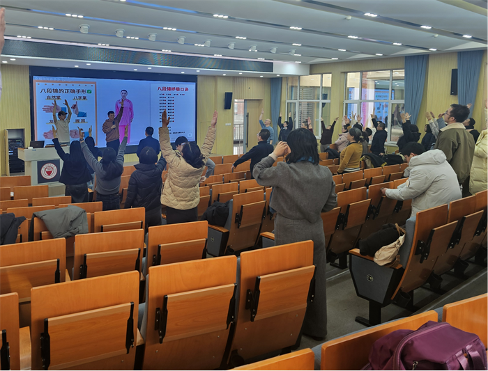 “八段锦”是我国传统的健身气功,动作简单易学,健身效果显著,深受广大群众喜爱。此次活动不仅让老师们在繁忙的工作之余放松了身心,增强了体质,也进一步弘扬了中华优秀传统文化,营造了积极向上、团结和谐的校园文化氛围。