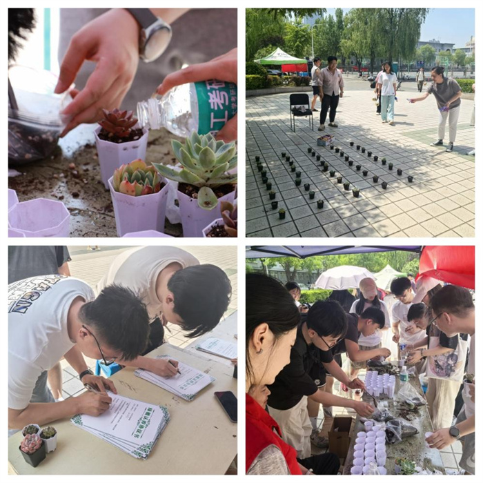 5月21日上午,迎西校区清泽小广场化身“绿色疗愈站”,200余盆多肉植物宛如灵动的生命载体,等待与主人开启心灵之约。同学们亲手栽种、填写认养协议,在培土浇水的日常养护中,感受生命成长的力量;套圈赢取大多肉的趣味环节,更让现场洋溢着欢声笑语。各学院教师纷纷加入认养行列,以言传身教引导学生在快节奏的学习中慢下来、静下来,让绿色成为心灵休憩的底色。