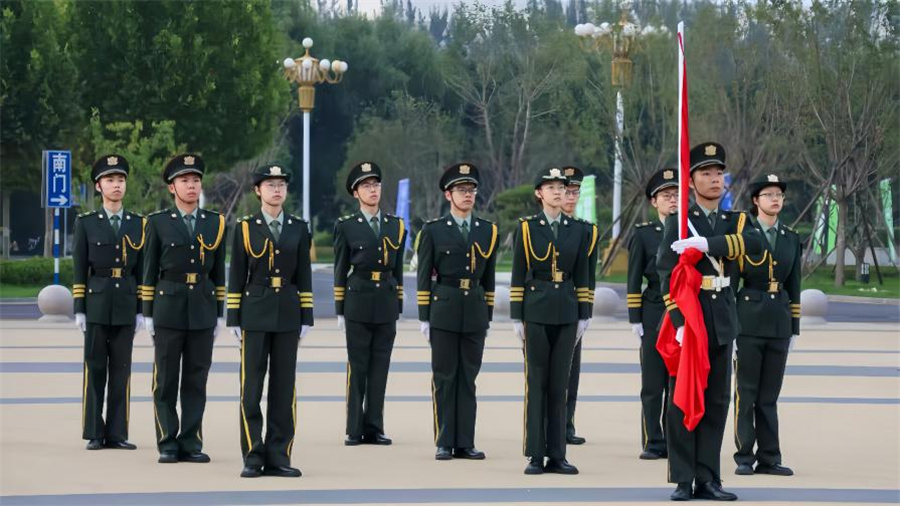 清晨7时整,校国旗护卫队身着橄榄绿礼服,迈着铿锵正步,在师生的注视下庄严入场,他们踏出的每一步都心怀着对祖国的忠诚,此刻全场师生肃然静立,目光聚焦于鲜艳的五星红旗。