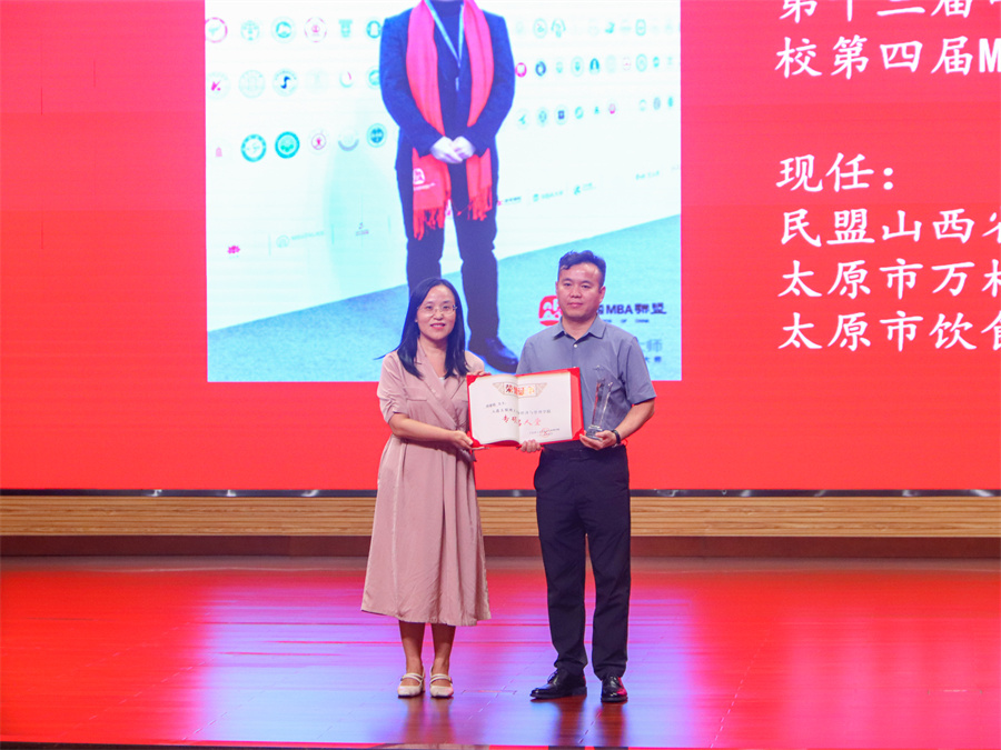 校友代表周健晓先生分享了他的求学与职业经历。他深情回顾了在母校的培养与关怀下成长的岁月,坦言MBA的学习经历为他事业发展奠定了坚实基础,并勉励学弟学妹珍惜时光、努力拼搏。