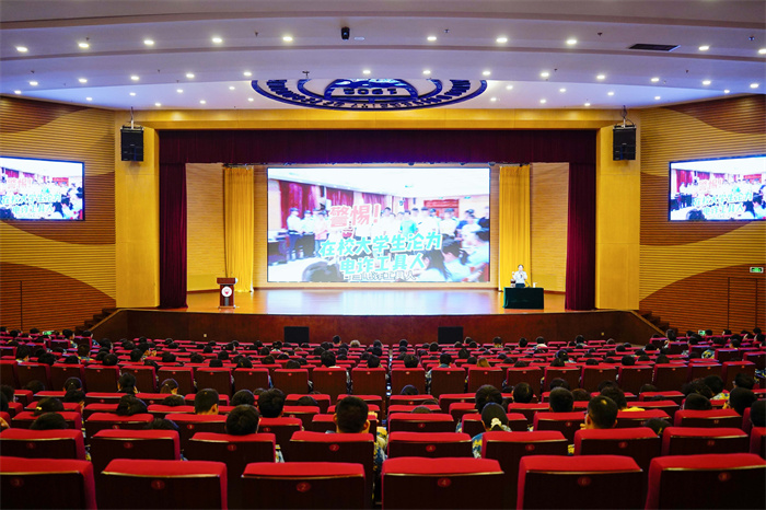 9月23日上午,校团委联合太原市公安局反电信网络诈骗中心在明向校区学生活动中心报告厅举办了“一堂反诈课”专题讲座。本次活动特邀劝阻宣传大队副大队长、太原市十佳反诈讲师李婉彤主讲,2025级400余名新生参与,沉浸式学习反诈知识。