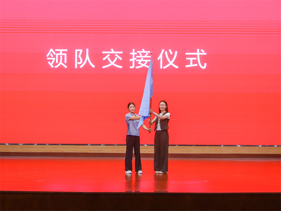 在领队交接仪式上,解颖庄重地将队旗交到2024级MEM胡赛媛手中,标志着太理竣跑团使命与责任的顺利传承。