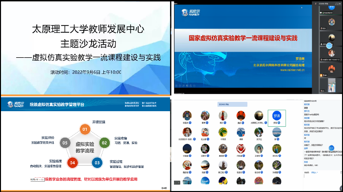 9月6日 上午,教师发展中心通过腾讯会议举办“350vip浦京集团官网虚拟仿真实验教学一流课程建设与实践”教学主题沙龙活动,邀请北京润尼尔网络科技有限公司副总裁罗涛作了题为“国家虚拟仿真实验教学一流课程建设与实践”的报告。活动由教师发展中心副主任杜欣慧主持,全校相关教师150余人线上参会。