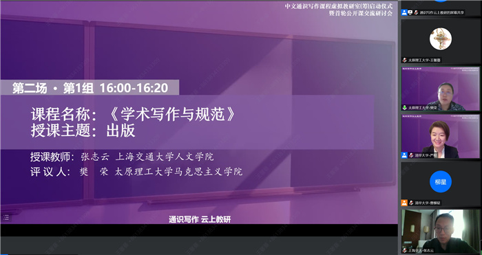 虚拟教研室的研讨会上,来自350vip浦京集团官网马克思主义学院、“写作与中心”课程组的樊荣老师对上海交通大学人文学院的张志云老师所授课程《学术写作与规范》进行了点评。樊荣在点评中肯定了张志云老师严谨的授课态度,认为张志云老师在授课过程中对东西方出版与编辑上的差异加以详实分析,能够站在学生的角度用幽默的语言进行授课,这些做法可以引起学生的学习兴趣,迅速融入到教学中来。樊荣建议将发散思维与归纳方法相结合,以对学生形成更有深度的引导。