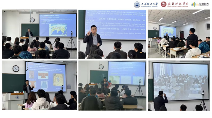 本次课程由轻纺工程学院刘淑强副教授主讲。刘淑强从蚕丝的历史、分类、发育与形成、形态结构、性能五方面进行了细致讲解,讲解综合运用视频、实物展示、板书、实例讲解等方式,深入浅出、形象生动,加深同学们对知识的理解。在理论知识讲授结束后,两地学生积极踊跃地向刘淑强提问互动,课程中展现出活跃的课堂气氛,产生了良好的教学效果。