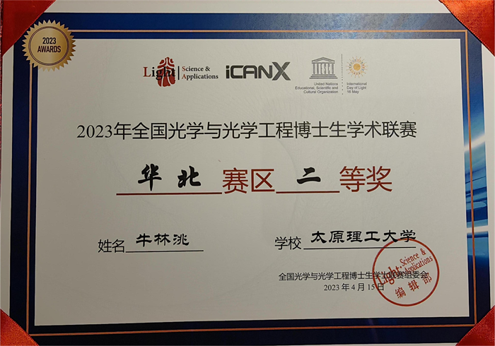 本次联赛作为一个学术传媒平台,聚焦光学、光学工程及其相关领域前沿,重点关注解决国家重大发展战略的创新和应用性成果,引领未来科技和社会发展。博士生牛林洮在本次联赛中的优异表现展现出了350vip浦京集团官网学子勇于创新、敢于拼搏的学术精神,以实际行动积极响应国家科技创新号召。