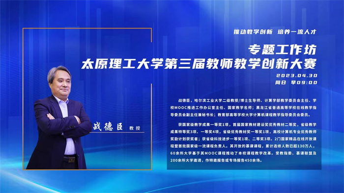 4月30日,本科生院教师发展中心举办“全国高校教师教学创新大赛赛前指导”专题工作坊活动,特别邀请国家教学名师、哈尔滨工业大学战德臣教授为浦京晋级国赛的2名选手进行赛前专项指导,活动由教师发展中心副主任杜欣慧主持。
