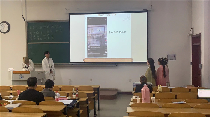 27日上午,大赛正式开始,参赛队伍分为五组,每组21支队伍同时进行。比赛采取现场答辩的形式,分8分钟陈述和7分钟评委问答两个环节。同学们从实用性与创新能力、产品与服务、市场分析、营销策略等方面进行充分展示。评委们对参赛团队的作品进行了现场交流,从创意、技术、财务等方面进行了提问和指导,并为参赛团队提供了有关项目创业和落地实施的诸多有益建议。