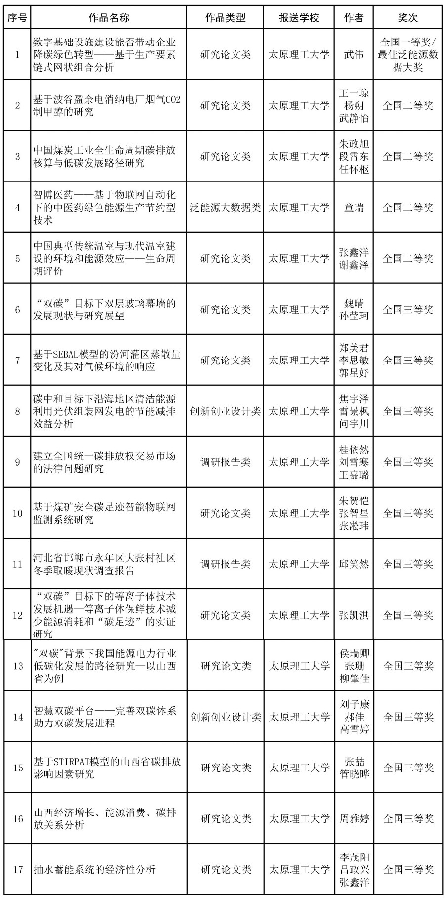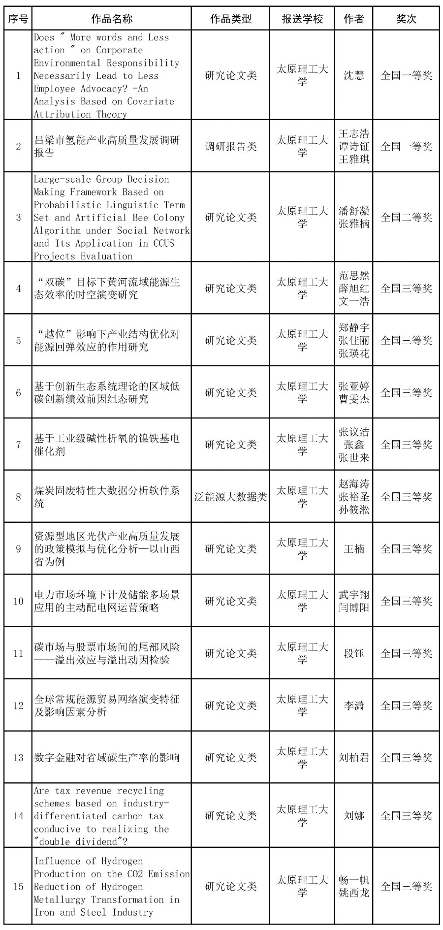 第九届全国大学生能源经济学术创意大赛自2022年12月启动以来,山西赛区共报名1602份作品,最终提交作品536份。经初审,合格作品526份。大赛分为校赛、区域赛、国赛等三级赛事,最终浦京共推荐入围国赛作品135项。经大赛组委会评审,浦京作品获奖情况如下:本科生组1项作品获得一等奖,4项作品获得二等奖,12项作品获得三等奖;研究生组2项作品获得一等奖,1项作品获得二等奖,12项作品获得三等奖。本科生组1项作品获得最佳泛能源大数据奖;秦芬、李静等2位教师获得大赛组织贡献奖;350vip浦京集团官网获得优秀组织单位奖。