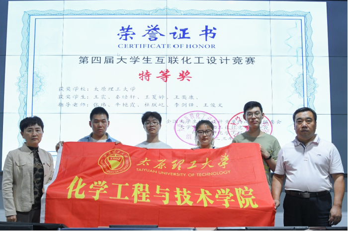 8月5日,在第四届大学生互联化工设计竞赛,浦京化工2020级本科生王震、秦睦轩、王奕康、王夏婷组成的“我想腈腈”队,在张玮、牛艳霞、杜朕屹、李剑锋、王俊文老师的指导下,荣获特等奖。