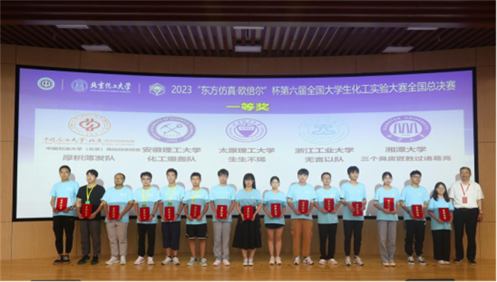 8月16日至22日,在中国化工学会、中国化工教育协会主办的2023“天正设计杯”第十七届全国大学生化工设计竞赛全国总决赛中,2020级杜昕宇、姚舜、吕怡恬、李聪、李烨琪组成的“精艺求腈”队,在盛清涛、邱丽、牛艳霞、闫晓亮、张玮老师的指导下,荣获全国总决赛一等奖。全国共有432所高校的3391支队伍报名参加本届赛事,最终共有60支队伍进入全国总决赛。