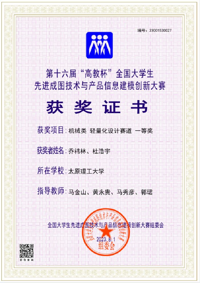 “高教杯”全国大学生先进成图技术与产品信息建模创新大赛,是图学类课程最高级别的国家级赛事,2018年被中国高等教育学会列入全国普通高校学科竞赛排行榜。大赛以培养学生的工匠精神,激发学生的创新意识,探索图学的发展方向,创新成图载体的方法与手段为宗旨。大赛结合新工科建设和工程教育专业认证,设立机械、水利、建筑和道桥四个竞赛类别,主要围绕计算机绘图、产品信息建模、数字化创新设计、轻量化设计、增材制造和BIM创新应用等赛道内容进行竞赛。第十六届“高教杯”全国大学生先进成图技术与产品信息建模创新大赛全国总决赛由中国图学学会制图技术专业委员会、中国图学学会产品信息建模专业委员会、全国大学生成图技术与产品信息建模创新大赛组委会和重庆交通大学联合主办。