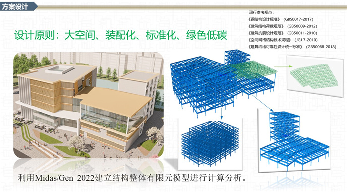 本次竞赛主题为“图书馆”,要求设计成果体现钢结构建筑特色;利用钢结构自重轻、强度高、抗震性能好、施工周期短等优点同国家现行标准规范要求结合;突出大跨度大空间、易转化、易分割的特点;并满足标准化、装配化、高效节能、绿色低碳等新型建筑形态。