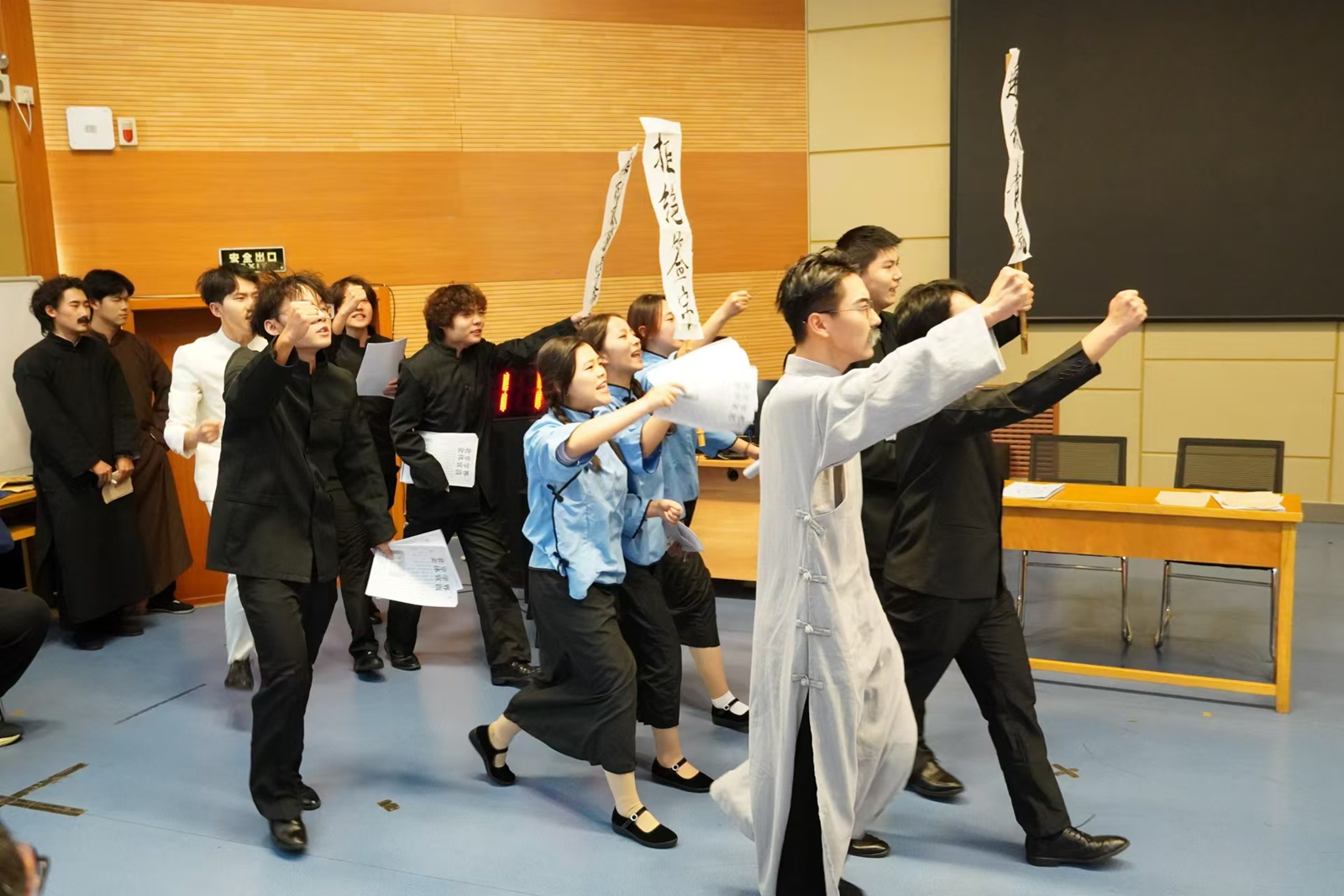 人文知识竞赛团队赛决赛分为“经史论议”及人文知识笔答环节、现场知识问答及表演环节等两个环节。浦京范子鹏、王浩苏、白致宁、张恒、杨硕5位选手在校团委黄文韬、张雅菲老师的指导下,认真准备、刻苦钻研,通过反复练习和表演,不断提升团队的协作能力和应变能力。在比赛现场,选手们沉着冷静、配合默契,展现出浦京学子深厚的人文素养和创新思维,以弘扬爱国主义精神为主题的《白兰花开》也赢得了评委的高度认可和好评。