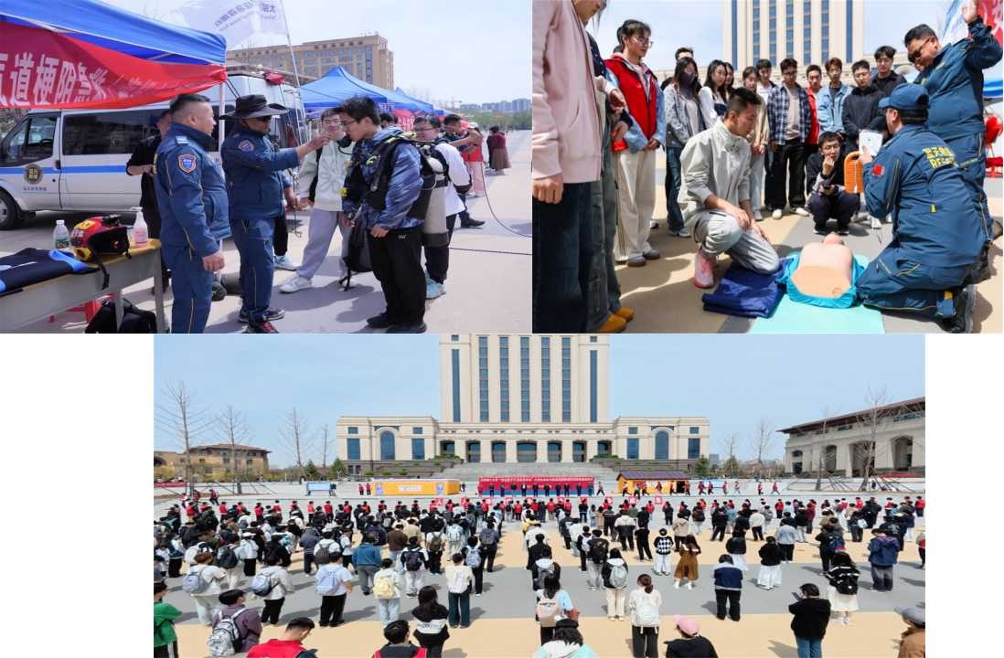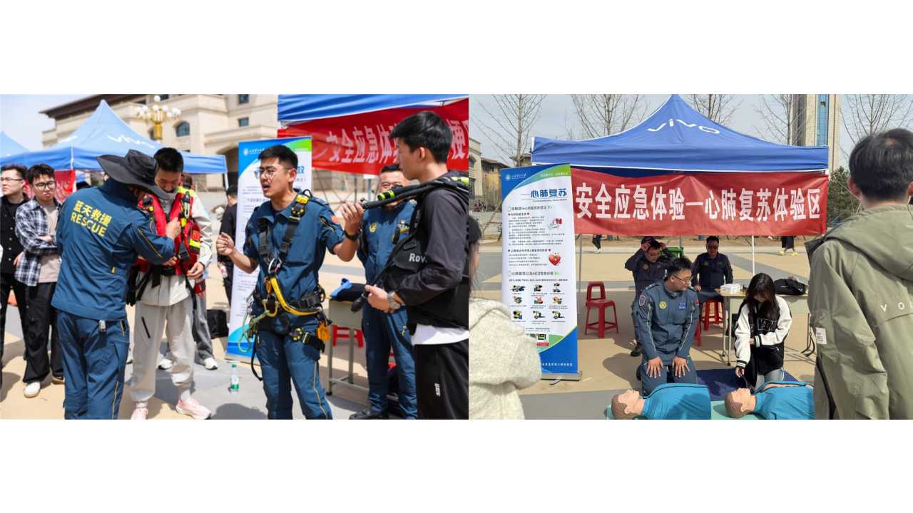 在校园内,安全与应急管理工程学院以一场别开生面的大学生安全与应急实践体验系列活动拉开序幕,通过沉浸式、互动式的实践场景,帮助大学生掌握实用安全技能,提升应急处置能力。蓝天救援人员通过人体模型,详细讲解心肺复苏(CPR)和海姆立克急救法的操作步骤,讲述正压式空气呼吸器及水域救援设备的使用方法。
