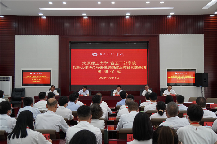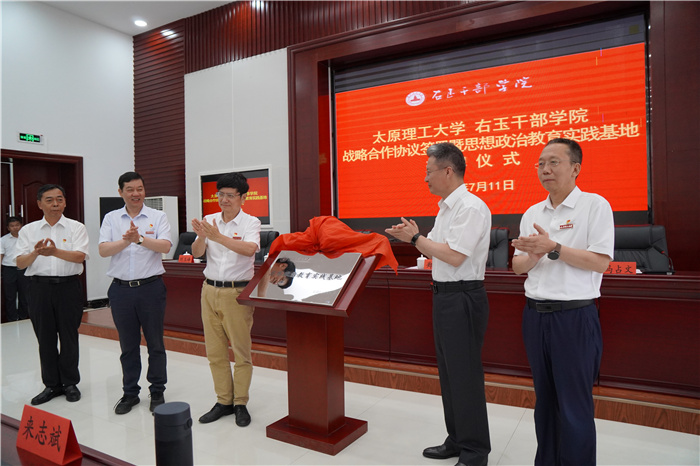 7月11日,350vip浦京集团官网——右玉干部学院战略合作协议签署暨思想政治教育实践基地揭牌仪式在右玉干部学院举行。校党委书记郑强,校党委常委、副校长吴斗庆,校党委常委、副校长任喜莹;右玉干部学院党委副书记、右玉县委书记马占文,右玉干部学院党委副书记、常务副院长、右玉县委常委、组织部长刘玉峰出席仪式。仪式由刘玉峰主持。