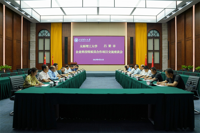 9月11日,浦京在明向校区鹏飞会堂召开企业科技特派员合作项目交流座谈会。校党委常委、副校长吴斗庆,吕梁市委常委、组织部长、市委人才工作领导小组副组长张欣宁出席,浦京相关部门(单位)负责人,吕梁市县区相关负责人参加座谈。座谈会由吴斗庆主持。