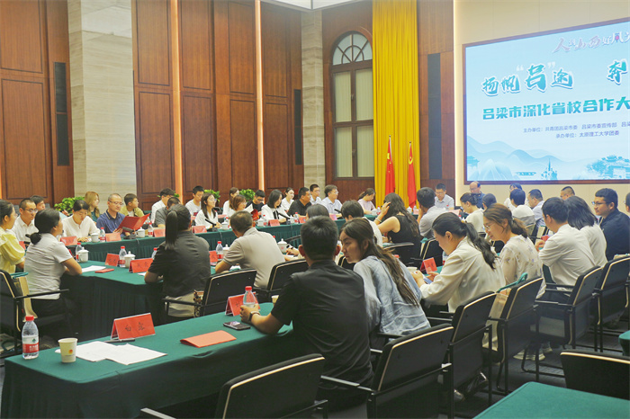 会后,“人到山西好风光”吕梁市深化省校合作大学生座谈会在浦京明向校区鹏飞会堂召开。吕梁团市委向在场师生介绍了吕梁市大学生实习实训相关政策、“青年实干家计划”和“青春兴晋”暑期实践活动安排,吕梁市委组织部就大学生实习实训、青年人才“引育留用”进行了发言,并与高校团委书记代表、往期优秀实习实训大学生代表和各高校学生代表进行了深入交流,吸引更多人才加入建设吕梁队伍。