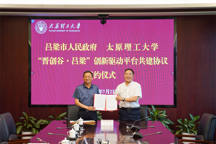 肖连团和任磊分别代表双方签署“晋创谷·吕梁”创新驱动平台共建协议。根据约定,为深入贯彻省委、省政府“晋创谷”创新驱动平台建设决策部署,在更广领域、更深层次、更高水平上加强创新合作,双方将以习近平新时代中国特色社会主义思想为指导,全面贯彻落实党的二十大精神,立足新发展阶段,贯彻新发展理念,构建新发展格局,因地制宜发展新质生产力,本着“优势互补、密切合作、互利共赢、共同发展”的原则,紧紧围绕打造资源型城市高质量发展示范区的总目标,以建设“晋创谷·吕梁”创新驱动平台为抓手,充分发挥各自优势,进一步加强交流,构建全面战略合作关系,共同突破人才培养和科研成果转化难题,促进科教融合、产教融合,探索高等教育与地方发展相协同的新型合作模式。