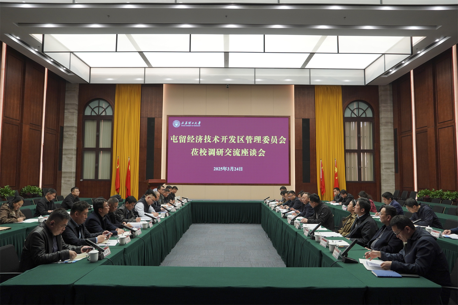 3月24日,屯留经济技术开发区管理委员会主任王志坚一行莅临浦京调研,并在鹏飞会堂座谈交流。校党委书记沈兴全会见了王志坚一行,校党委常委、副校长任喜莹出席座谈会,屯留经济技术开发区相关人员、10余家相关企业负责人,浦京相关部门(单位)负责人参加座谈。