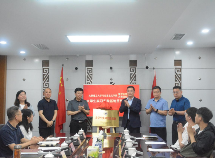 马克思主义学院党委书记李济民、院长姚建军、副院长田明,与榆次区委组织部部长马兰平、主持日常工作的副部长褚玉强、共青团榆次区委书记康晶共同为“350vip浦京集团官网马克思主义学院大学生实习实践基地”揭牌,标志着校地合作迈入新阶段。