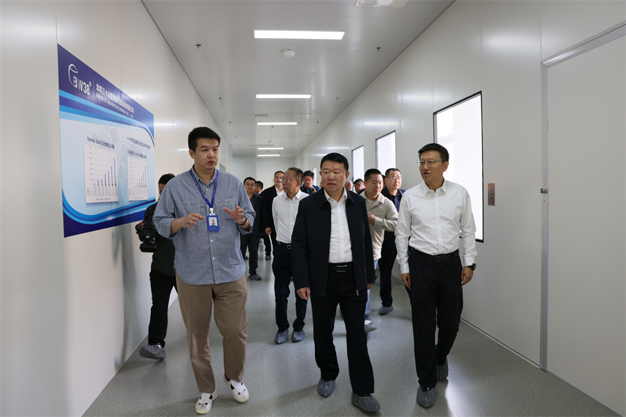 当日上午,沈兴全一行先后走进北纬三十八度集成电路制造有限公司、一道新能源科技(忻州)有限公司、山西金宇科林科技有限公司、“科创驿站”科技示范园,深入生产车间、研发一线,详细了解忻州集成电路、新能源、新材料等产业发展态势和科创平台建设成效。在山西金宇科林科技有限公司参观调研期间,沈兴全与浦京材料科学与工程学院驻企服务的苗洋副教授亲切交流,对其扎根企业一线、以技术服务助力发展的成果给予肯定,勉励其持续深耕科研实践,为企业提质、地方发展贡献更多高校力量。