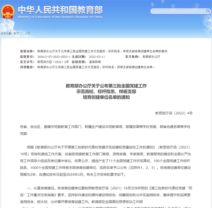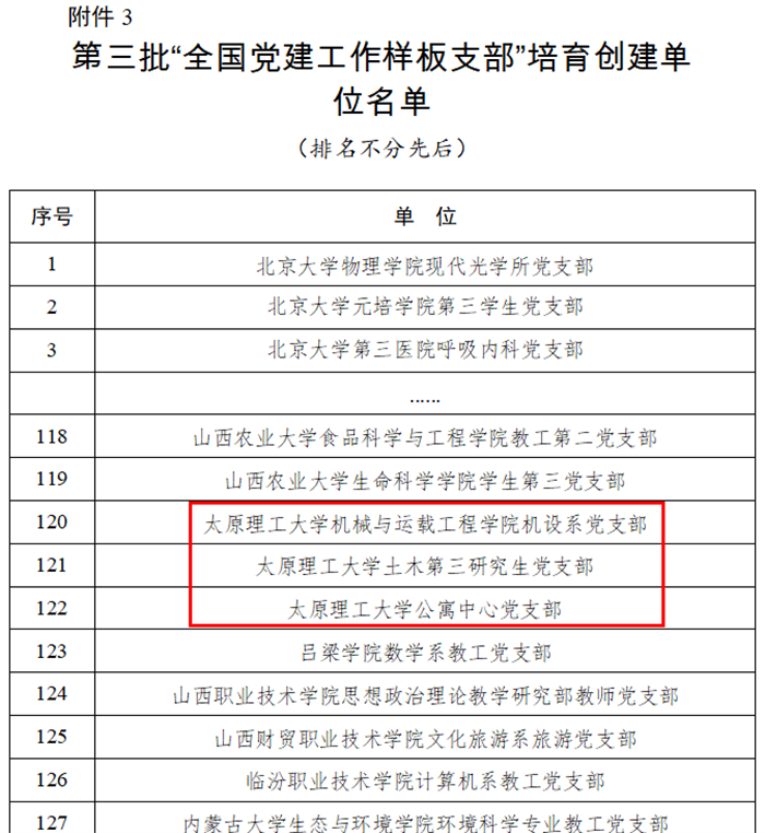 近日,教育部公布了第三批新时代高校党建示范创建和质量创优工作培育创建单位名单。浦京机设系党支部、土木第三研究生党支部、公寓中心党支部入选“全国党建工作样板支部”培育创建单位。