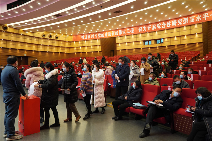 会上,10个基层党组织书记进行了现场述职,其余24位基层党组织书记作书面述职。述职内容聚焦坚持和加强党的全面领导,围绕落实党中央、省委和校党委关于基层党建工作部署要求,结合党建工作重点,从学校的人才引育、教学改革、综合治理、疫情防控等重点任务展开。述职结束后,全体参会人员以投票方式对全部基层党组织书记进行了评议。