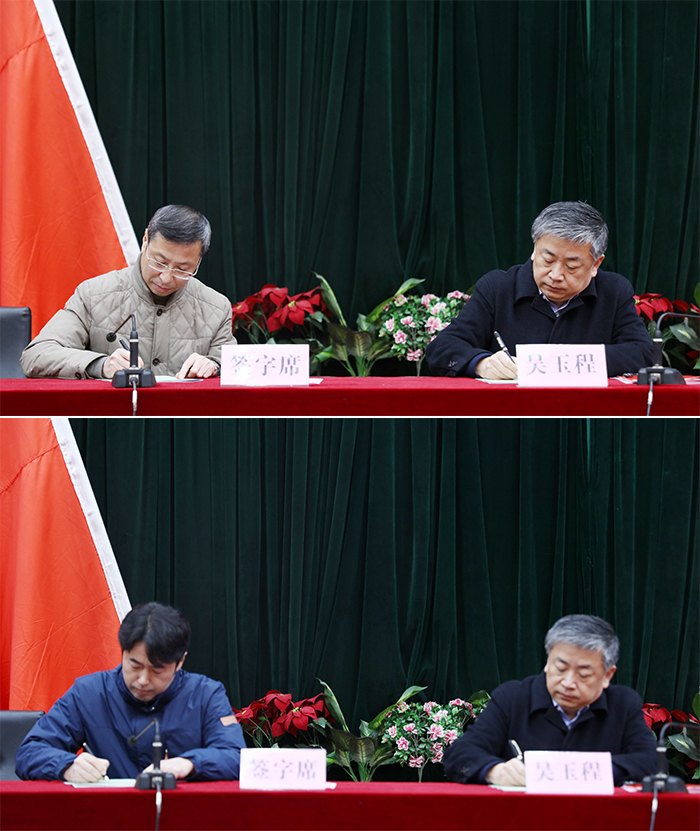 会上举行了2019年度党建工作责任书签订仪式,吴玉程代表校党委与基层党委负责人签订党建工作责任书。
