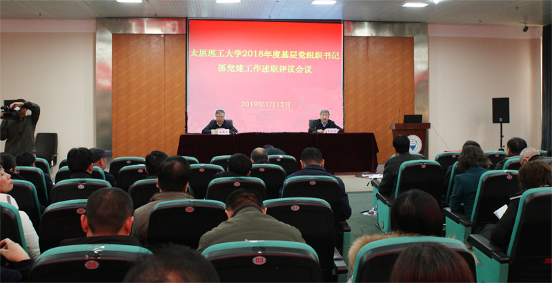 1月12日上午,浦京2018年度基层党组织书记抓党建工作述职评议会议在迎西校区科学楼二层报告厅召开。在校的校领导出席,校党委委员、学校党群部门负责人、各基层党委(直属党总支)书记、副书记、学院党政办主任、党委秘书、党支部书记代表等140人参会。校党委副书记李晋平主持会议。