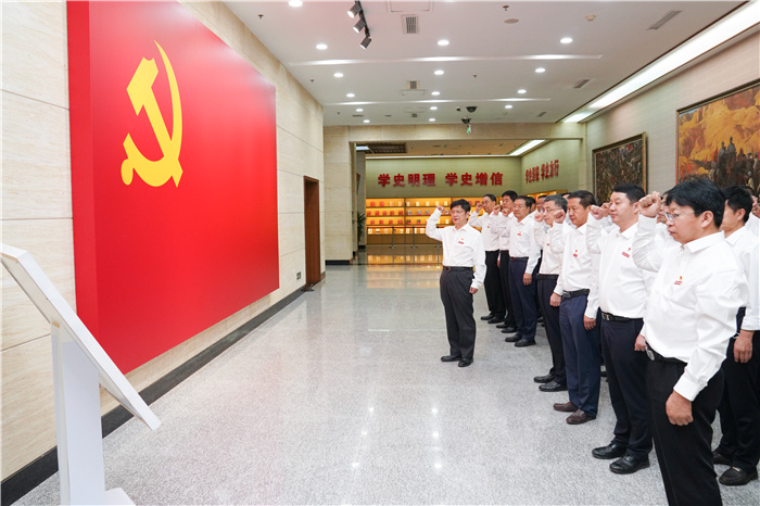 步入八路军太行纪念馆,全体党员佩戴党徽、举起右拳,在校党委书记郑强带领下,面向鲜红的党旗重温入党誓词,牢记和坚定共产党人的初心和使命。庄严坚定的誓言在大厅内回荡,昭示着共产党人矢志为党和人民事业不懈奋斗的坚定信念。