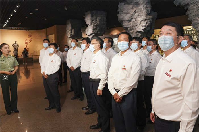 上午10时许,全体同志步入展厅,集体参观纪念馆,认真聆听讲解员讲解八路军抗战史实、述说老一辈革命家的丰功伟绩。同志们不时驻足观看陈列的文物、文献、书籍和照片,询问有关细节,了解当年战斗的情形和感人事迹。