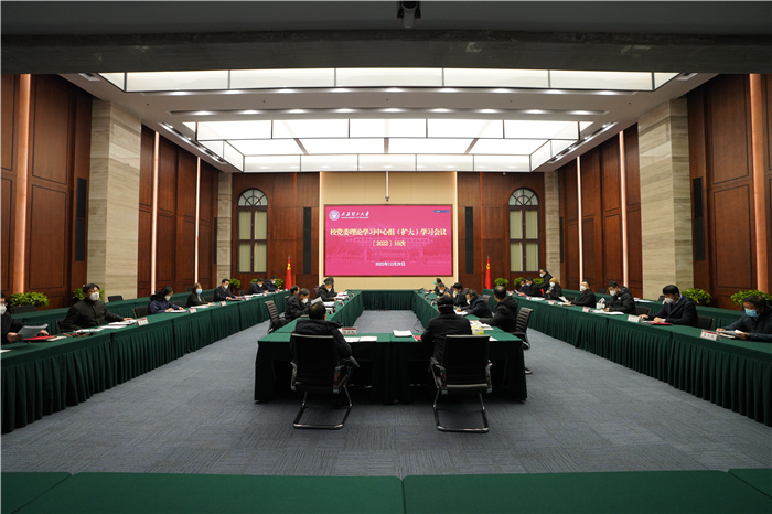 12月29日下午,校党委在明向校区行政楼鹏飞会堂召开理论学习中心组(扩大)学习会。校党委理论学习中心组成员、校党委委员参加会议。省委教育工委列席旁听组组长、山西医科大学党委副书记彭月兰,省委教育工委列席旁听组成员、山西医科大学党委宣传部负责人侯小宝应邀在线列席旁听指导。校党委书记郑强主持会议。