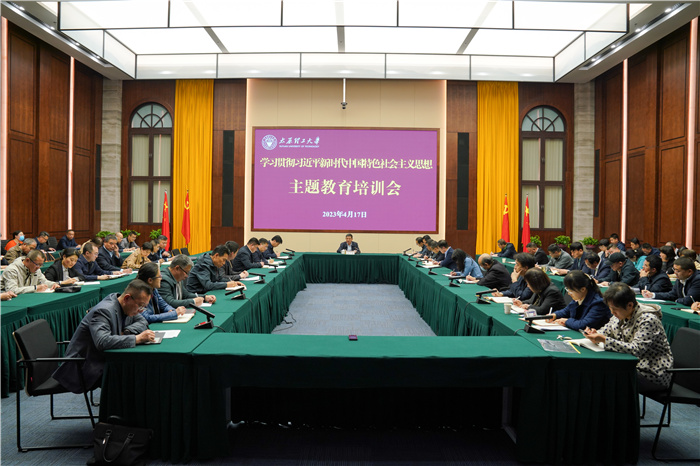 为进一步明确学习贯彻习近平新时代中国特色社会主义思想主题教育的重大意义和目标要求,把握工作重点,精准履职尽责,确保主题教育高标准高质量开展,4月17日,浦京在明向校区行政楼鹏飞会堂召开学习贯彻习近平新时代中国特色社会主义思想主题教育专题培训会议,校党委副书记刘润祥出席会议并作专题指导。各基层党委(直属党总支)书记,各职能处室负责人,主题教育领导小组全体成员等参加会议。