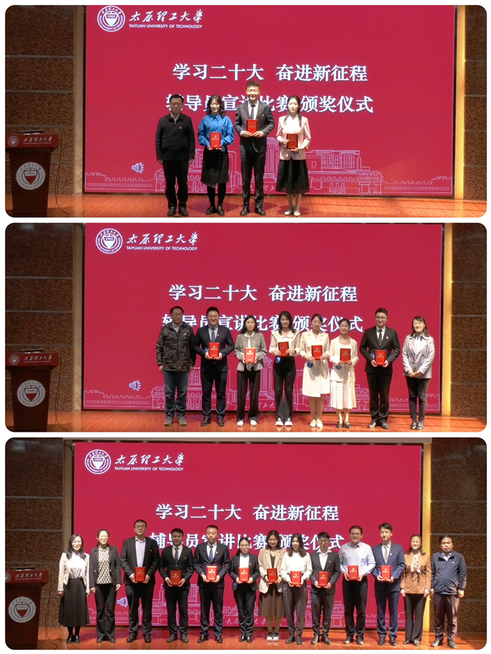 经过教师评委、学生评委综合评分,建筑学院辅导员张涛、电气与动力工程学院辅导员杨慧瑶、生物医学工程学院辅导员刘颖3人获得一等奖,环境科学与工程学院辅导员巩佳佳等6人获得二等奖,轻纺工程学院辅导员毕丽霏等9人获得三等奖。参会领导为获奖选手颁发了获奖证书。