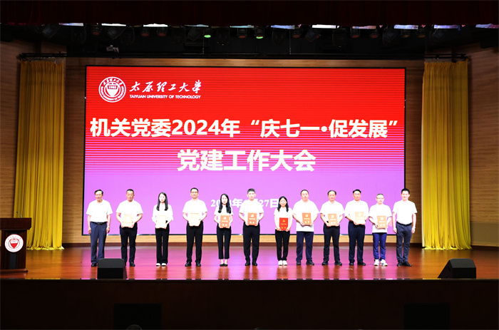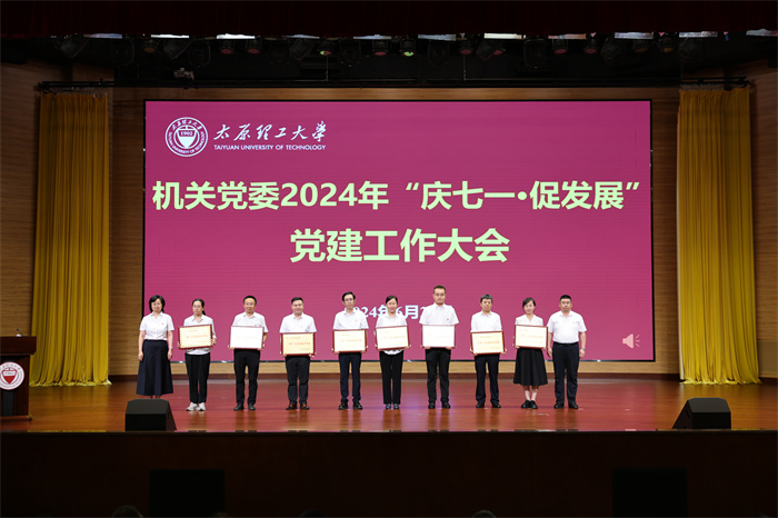 会议视频展示了14个优秀党建品牌创建活动。与会领导为组织部党支部、宣传部党支部、人事处党支部、审计处党支部、创新创业学院党支部、校工会党支部、招标采购中心党支部7个党支部颁发了“先进基层党组织”奖牌,为驻校纪检监察组、学生工作部、人才工作办公室、发展规划处、财务部、研究生院、校园规划与建设处、校团委8个部门颁发了“十型”机关创建“标兵单位”奖牌,为纪检监察党支部创建的“润廉清锋”、学生处党支部创建的“同心筑梦”、保卫部党支部创建的“‘保’你平安 ‘卫’爱护航”、科研院党支部创建的“三彩”、国有资产管理处党支部创建的“护资先锋”、校园规划建设处党支部创建的“学堂工匠”、校团委党支部创建的“青年之+”等7个品牌颁发“优秀党建品牌”奖牌,为魏铁柱等38名优秀共产党员、高颖等17名优秀党务工作者、刘诗琦等12名“十型”机关创建先进个人颁发了荣誉证书。