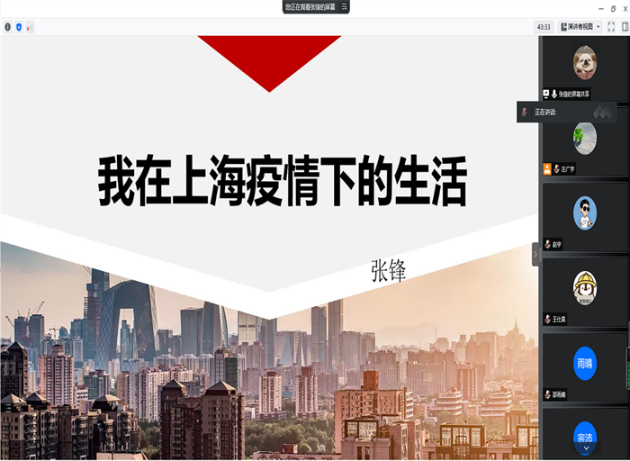 支部成员张锋围绕“我在上海疫情下的生活”,结合自己抗疫亲身经历,向党支部展示了南极精神的力量,还有“极地中心志愿者队”在上海抗疫防疫过程中团结协作、无私奉献、科学抗疫、乐观向上的精神。面对疫情的快速变化,党员们只讲奉献、不计得失,发扬着众志成城、共克时艰的精神品质。在党员们的共同努力下,中国第38次南极考察队平安归来。