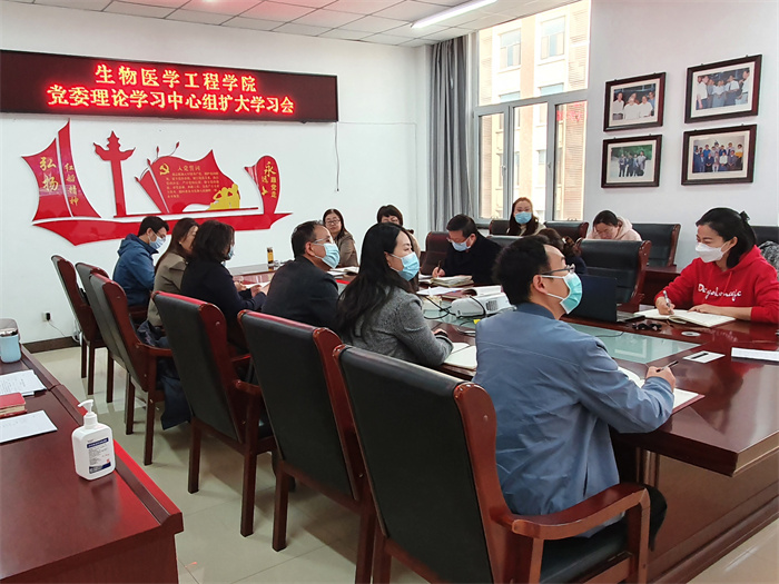3月15日上午,生物医学工程学院在院408会议室召开院党委理论学习中心组(扩大)学习会议。院党委书记韩志军、副书记李昱霞、副院长安美文、工会主席、三办一委、系、所、中心负责人及各党支部负责人参加了学习会议。会议由韩志军主持。