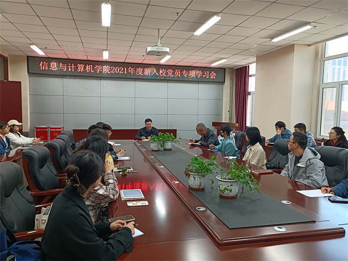 为扎实推进党史学习教育走深走实,充分发挥新生党员模范带头作用,10月11日下午,信息与计算机学院在学院517会议室进行了新生党员专题学习会,院党委书记彭彦彬、党政办张建军、各研究生支部书记及2021级新生党员参加,会议由彭彦彬主持。