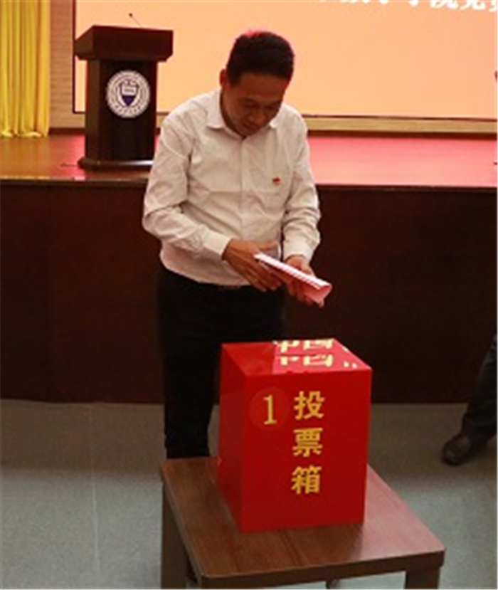 选举过程中,与会正式党员严格按照选举工作要求,经过慎重思考、反复酝酿,以无记名方式认真填写选票,并投出自己神圣一票。根据计票结果,大会差额选举产生了8名出席学校第三次党代会的代表。