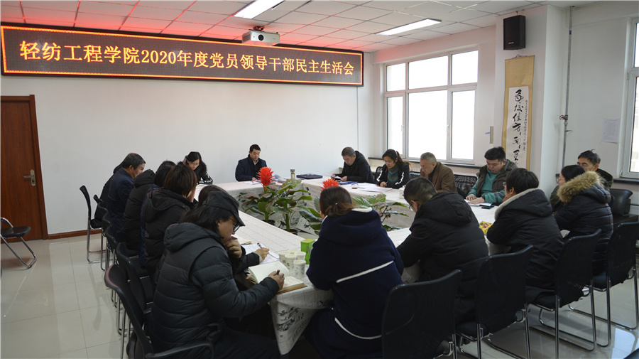 按照校党委的统一部署,经过前期精心准备和统筹安排,轻纺工程学院于1月8日上午在学院401会议室召开了2020年度党员领导干部民主生活会。副校长吴斗庆、组织部培训科陈霞老师出席会议,学院党政领导参会,学院专职组织员、中层干部、双代会代表列席会议。院党委书记卢建军主持会议。